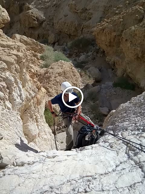 חבל העומס הינו השמאלי. החבל הימני הינו השרך איתו איבטחנו, הקצה שלו כמה ס"מ מחוץ לתמונה |